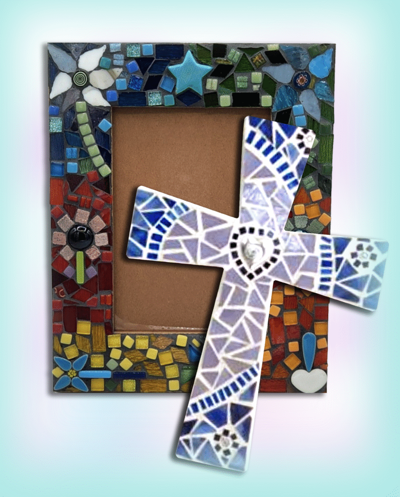 Break a Dish and Make a Mosaic Piece of Art! – You Choose: Picture Frame OR Cross!