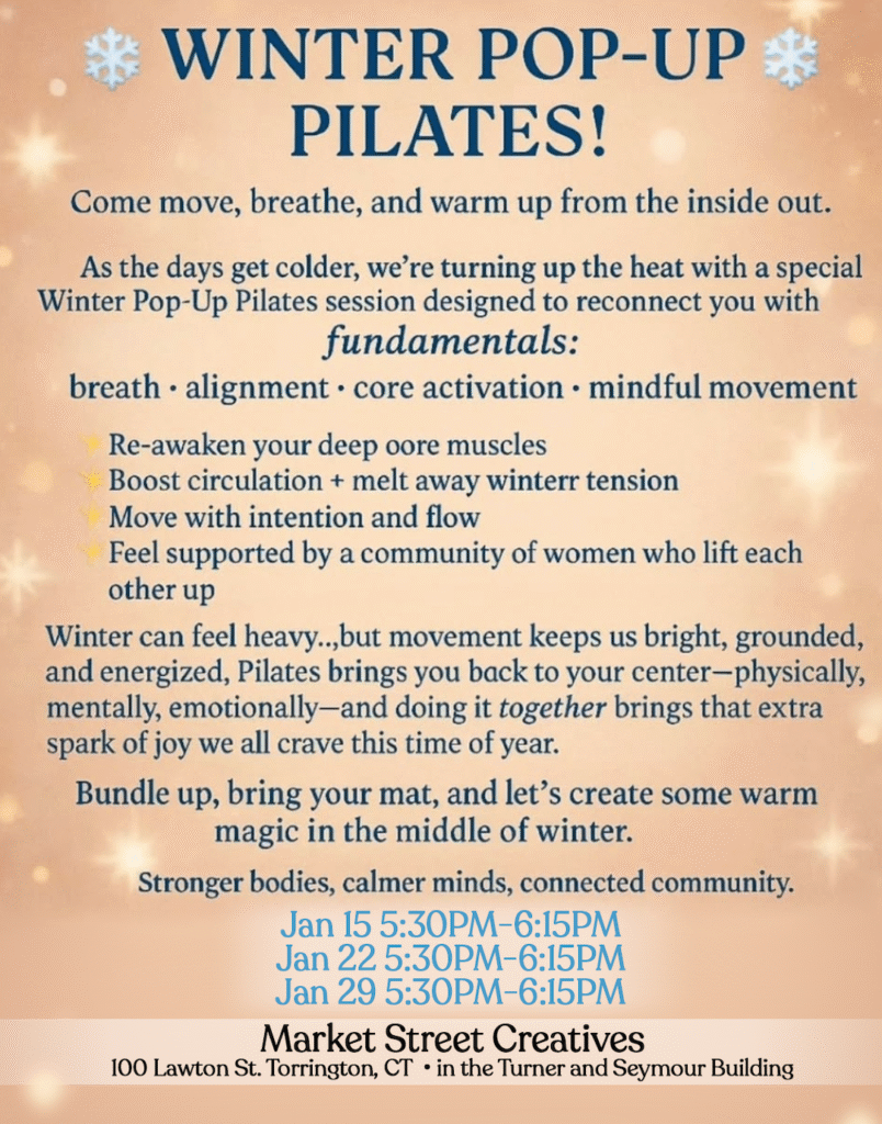 Winter can feel heavy, but movement keeps us bright, grounded, and energized. Pilates brings you back to your center—physically, mentally, and emotionally. And moving together adds that extra spark of connection and joy we all crave this season.